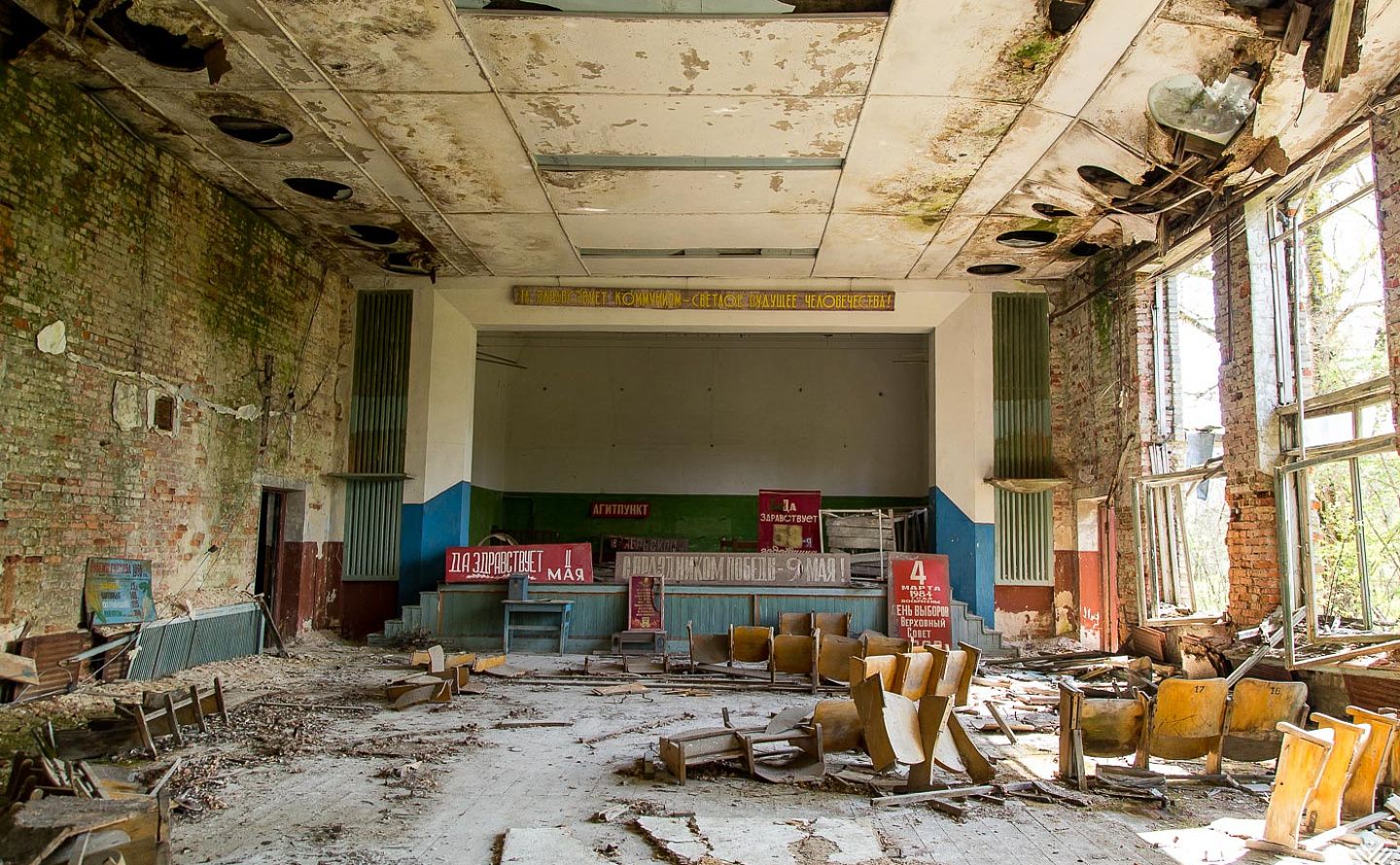 После этого начинается самая интересная часть путешествия — мы въезжаем непосредственно в 30-километровую зону отчуждения и начинаем осматривать заброшенные деревни. Здесь по-настоящему особенная, «сталкерская» атмосфера: в школе до сих пор валяются детские рюкзаки, тетради, счеты и противогазы, в доме культуры пестрят советские агитационные плакаты, а в жилых домах остались печки, мебель и открытые банки с соленьями. На Погонянском канале стоят два заброшенных корабля, возивших баржи из Мозыря в Киев до аварии. Тысячи мелких и крупных объектов быта из прошлого.